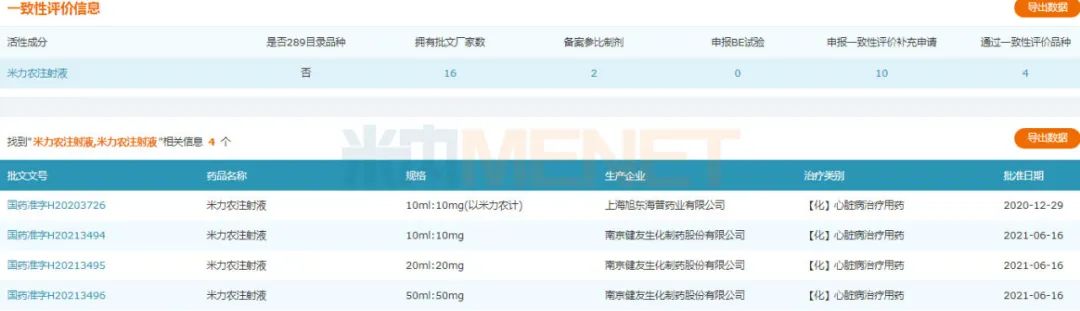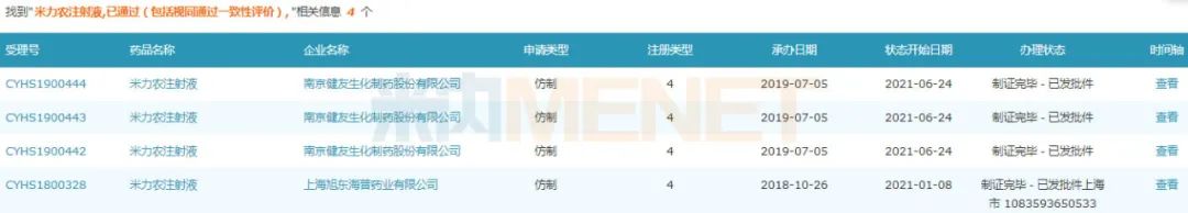 7月16日,国家药监局官网显示,扬子江上海海尼药业的米力农注射液以补充申请获批过评,成为该产品第3家过评的企业。米内网数据显示,2020年中国公立医疗机构终端米力农注射液销售额超过9亿元。在此之前,该产品仅有南京健友生化制药和上海旭东海普药业两家以仿制4类报产获批,视同过评。