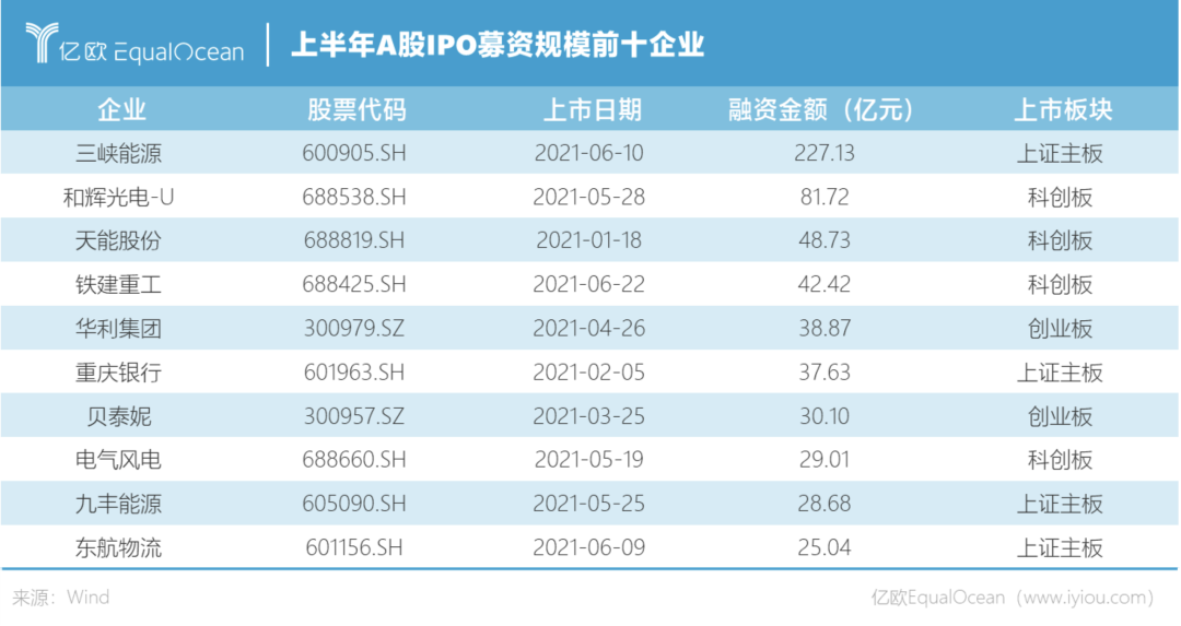 从IPO数量和融资额度来看,在过去两年半,A股市场2021年上半年的表现仅次于2020年下半年。