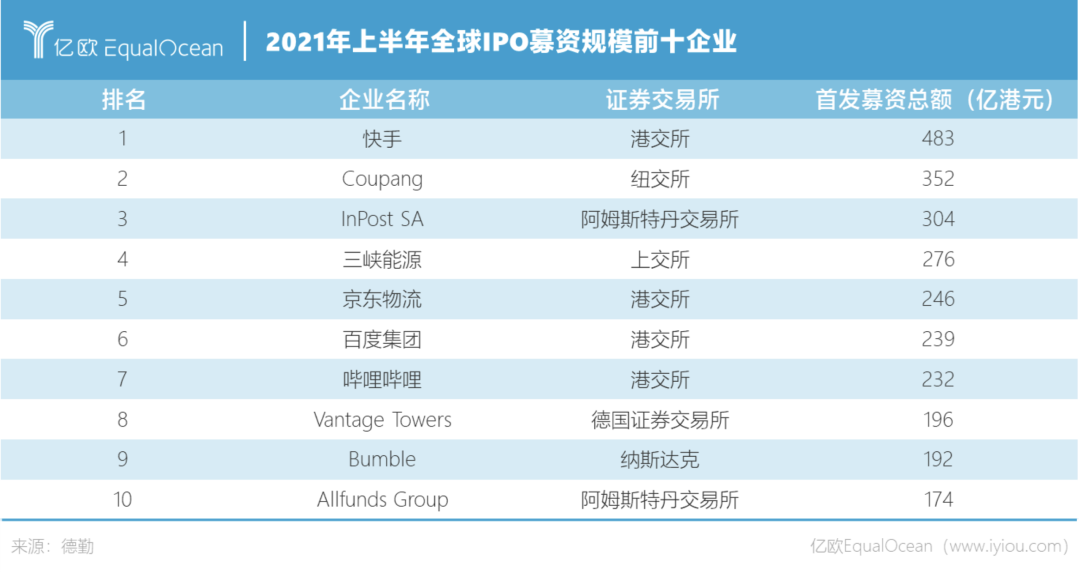 这些巨头企业可观的募资额,推动了港股市场2021年上半年融资总额增长翻倍。