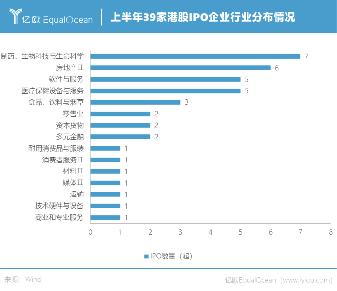 综合IPO数量和首发募资总额来看,制药、生物科技与生命科学和软件与服务两大板块表现较突出,分别有7家和5家企业成功IPO,募得资金202.71亿港元和1024.84亿港元。