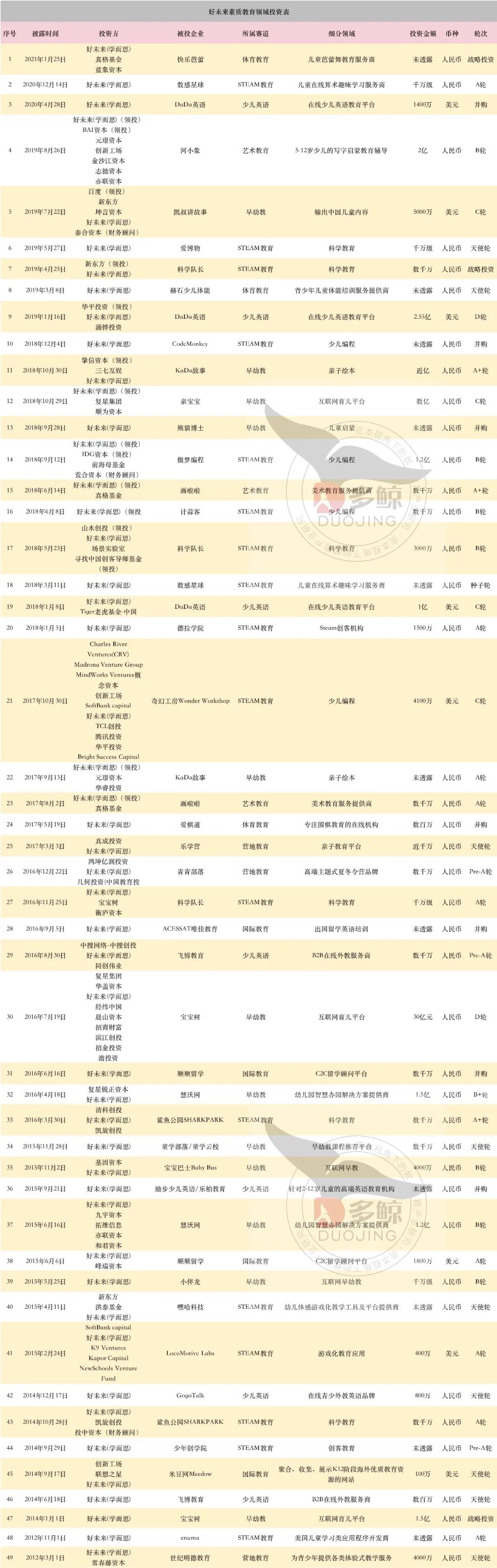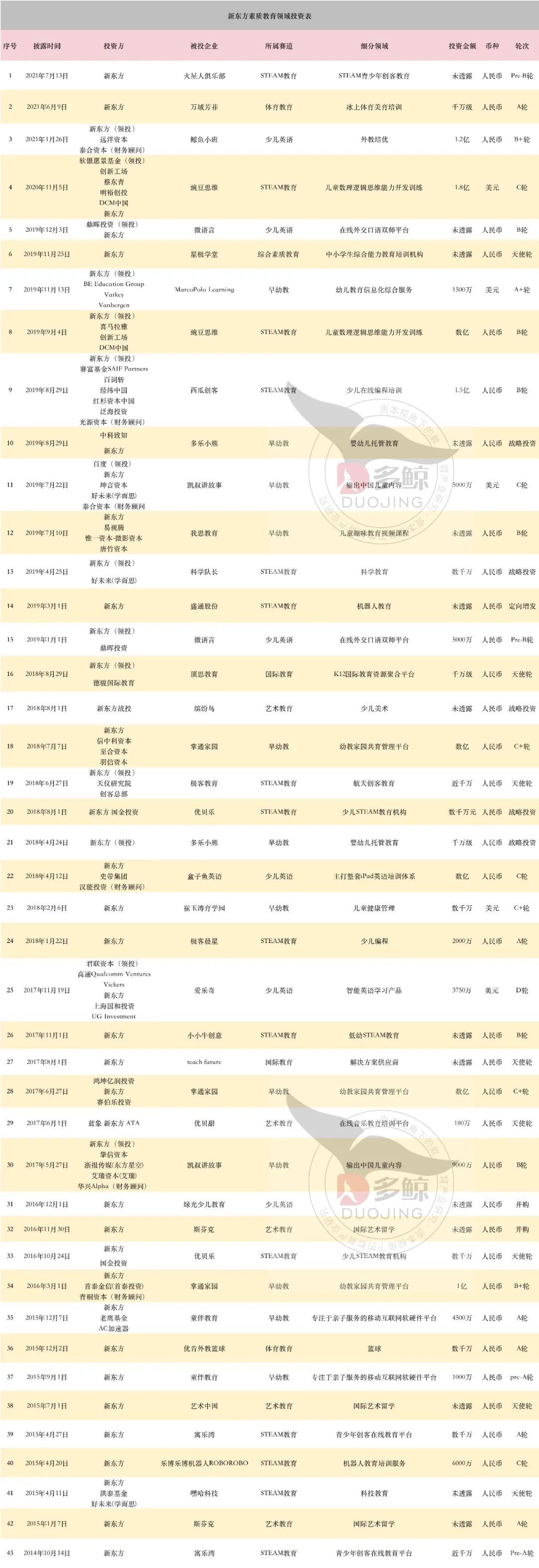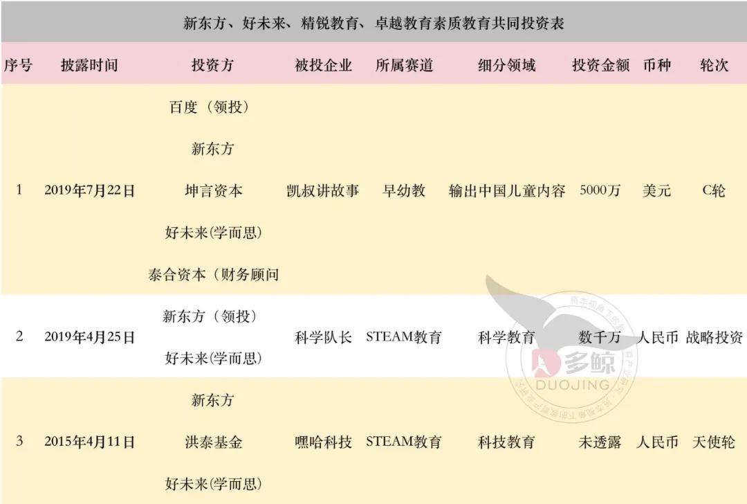 资的后起之秀,出手次数明显少于新东方和好未来。