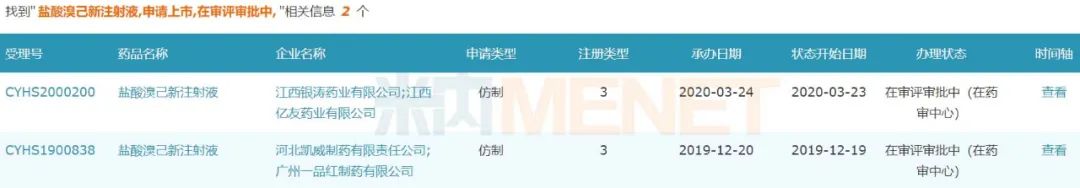 目前,溴己新注射剂有盐酸溴己新注射液、注射用盐酸溴己新和盐酸溴己新葡萄糖注射液。其中,盐酸溴己新注射液生产企业有华润双鹤药业、四川美大康佳乐药业、石家庄四药等6家。其中,仅有四川美大康佳乐药业和石家庄四药两家企业过评。此外,河北仁合益康药业和上海旭东海普药业的一致性评价补充申请在审评审批中,江西银涛药业|江西亿友药业、河北凯威制药|广州一品红制药以仿制3类报产在审评审批中,获批后将视同过评。