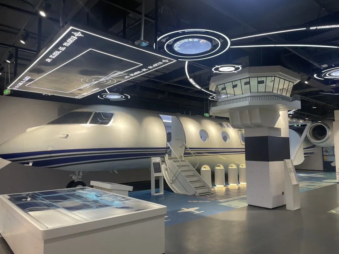 小镇客厅从全球视野出发,采用最先进、最前沿的科技手段,运用艺术化的设计手法打造了国际化的展示空间,创造了数个国内第一的展示技术,配合各处巧妙穿插飞行文化展示和体验。