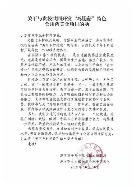 学院积极探索乡村振兴新路径,在济宁鲁桥镇、长岛海洋生态文明综合试验区、烟台经济技术开发区古现街道办事处、济南市平阴县孔村镇、马山街道日头泊村等地成立的5个乡村振兴工作站,围绕当地资源禀赋,一手挽政府、一手挽企业,在技能培训、人才培养、产品开发、文化传承等方面双向赋能、精准施策。在兰陵举办“人才文化赋能,助力乡村振兴”活动,为兰陵贫困学子提供入学服务。