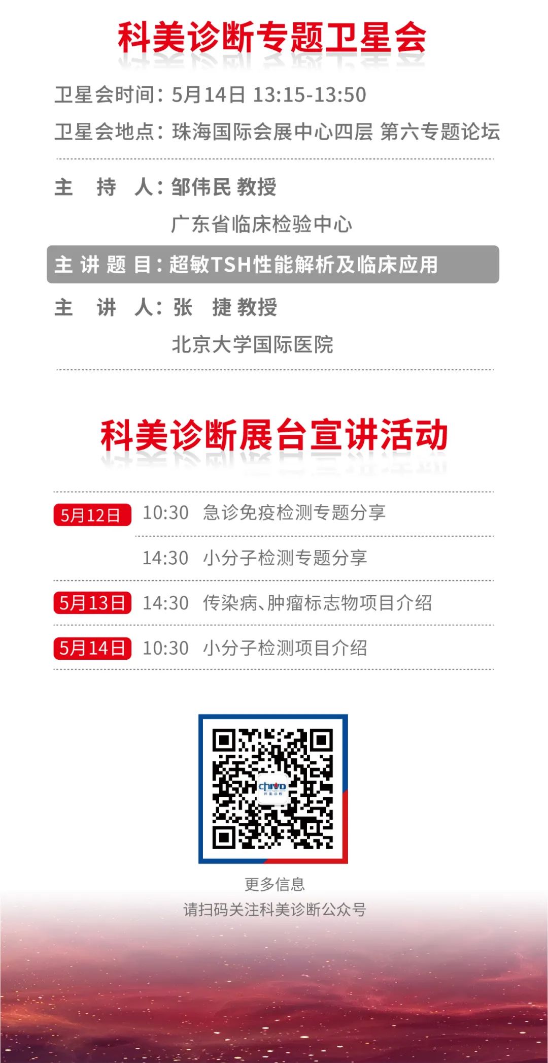 在此次CCLM会议上,科美诊断卫星会将聚焦超敏TSH。