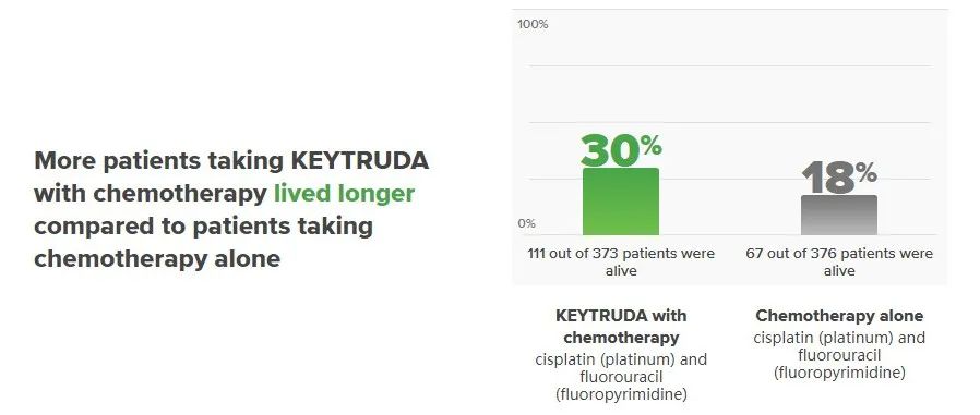 2021年3月24日,FDA批准K药联合含铂化疗一线治疗不可切除或不适合根治性放化疗的局部晚期或转移性的食管癌或胃食管交界处 (GEJ) 腺癌。这是全球首个获批一线治疗食管癌全人群的PD-1单抗。