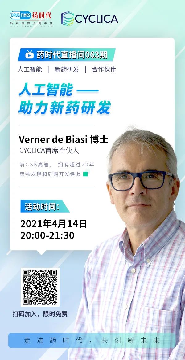 药时代特别邀请Cyclica首席合伙人Verner de Biasi博士莅临直播间,向朋友们介绍Cyclica如何使用人工智能助力新药研发,帮助朋友们更好地了解他们特有的药物发现平台在设计新型药物分子等方面做出的贡献。