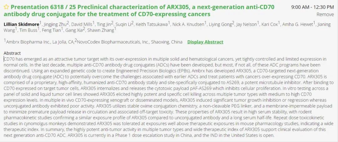 德曲妥珠单抗的问世,将带来ADC药物开发格局的改变。Ambrx就曾因治疗格局的改变和竞争,放弃了HER2 ADC药物ARX788的内部开发,由新码生物继续推进国内的研究和上市申请。如今,Ambrx又携带ARX517(PSMAADC)和ARX305(CD70 ADC)开启下一段征程。当然,ARX305依旧利用肟共轭化学键将抗体与不可切割的PEG接头和膜不可渗透的有效载荷(pAF-AS269)偶联。
