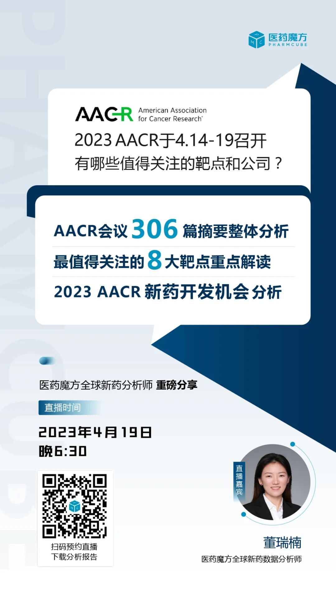 此外,医药魔方也将继续开展2023 AACR的解读分析直播活动,包括对会议摘要的整体分析、最值得关注的8大靶点重点解读以及新药开发机会分析等,敬请期待。