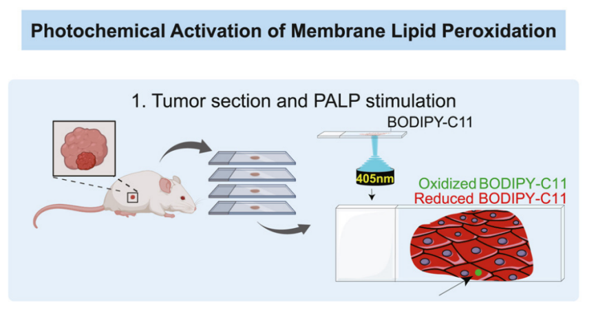 所以需要有更好的方法,对冷冻切片、或类似样本进行铁死亡敏感性的预测性分析。研究中,邹贻龙围绕该问题进行尝试,并从文献中获悉激光具备诱导脂质过氧化的潜在可能性。