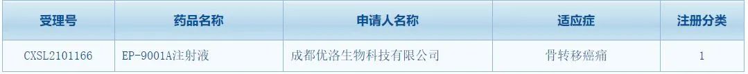 EP-9001A注射液本次获批的临床研究适应症为骨转移癌痛。骨转移癌是指某些发生在病人骨组织之外的恶性肿瘤通过血转移到骨组织,从而引发的以骨损害和疼痛为主要表现的一种疾病。