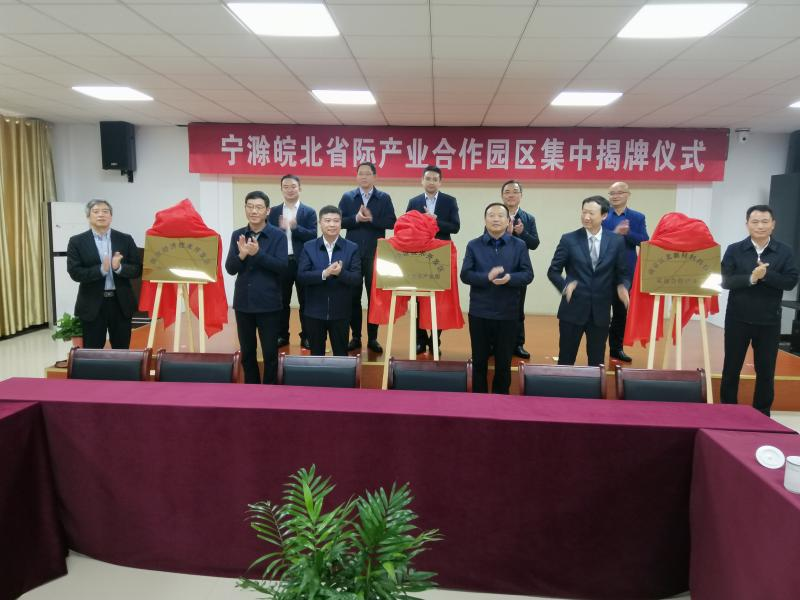 11月12日,宁滁皖北省际产业合作园区集中揭牌仪式在安徽省滁州市明光市举行,会上“江宁—明光合作产业园”正式揭牌。安徽省发改委皖苏合作联络处处长唐敬,江宁开发区管委会副主任刘群,滁州市委常委、市委秘书长杨甫祥,滁州市委常委、常务副市长邓继敢出席会议。明光市领导张秀山、张传宗、张瑞,江宁开发区、南京经开区、南京江北新材料科技园、明光市、凤阳县、定远县相关负责同志,卫岗乳业、诺玛科、嘉隆电气、中电环保、磁谷科技、美特林科、华创环境等7家江宁开发区企业代表参加活动。