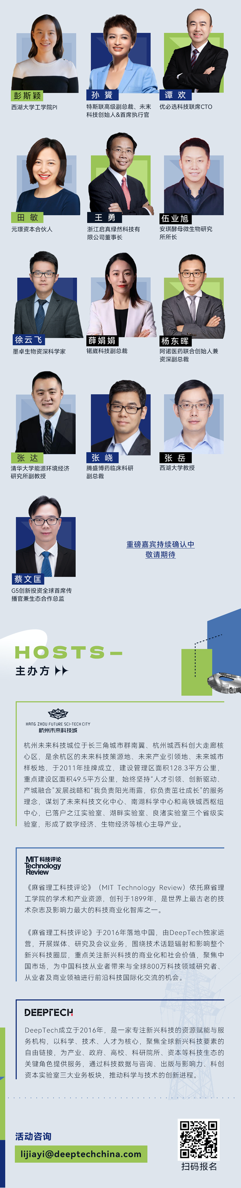 峰会由杭州未来科技城(海创园)管委会指导,由《麻省理工科技评论》中国主办,并由 DeepTech、云樾科技承办,