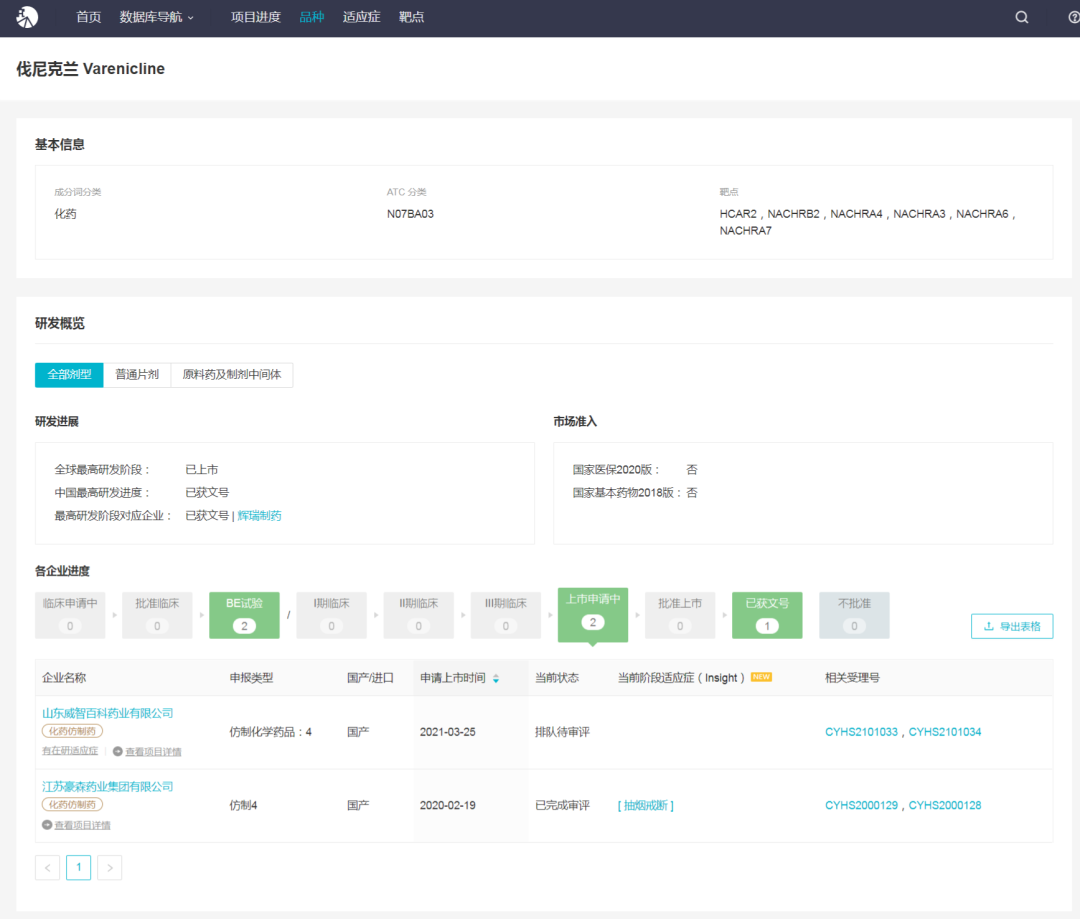 Insight 数据显示,豪森是国内首家递交酒石酸伐尼克兰片剂上市申请的企业,有望拿下该品种首仿,此外,国内还有山东威智百科药业也报上市,正在审评中。