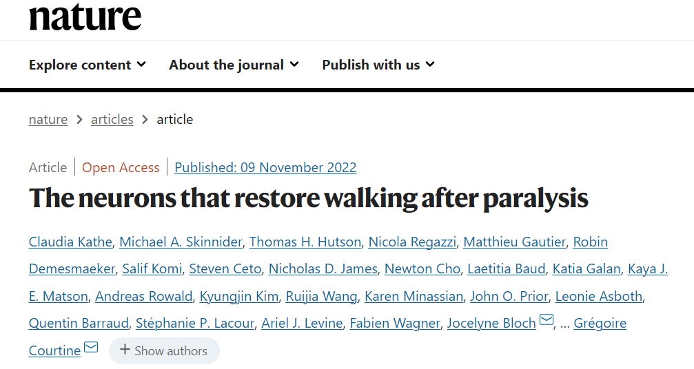 近日,来自瑞士联邦理工大学(EPFL)的 Grégoire Courtine 团队在《自然》杂志上发表了题为 “The neurons that restore walking after paralysis” 的研究论文,作者揭示这种治疗进展背后的神经生物学机制。作者团队首先描绘了脊髓损伤小鼠从瘫痪状态恢复过程中的详细分子图谱,然后利用该分子图谱确定对脊髓损伤运动恢复具有关键作用的一种细胞类型。作者团队确定了对脊髓损伤运动恢复具有关键作用的细胞,该成果将成为未来实现运动功能完全恢复的重要一步。