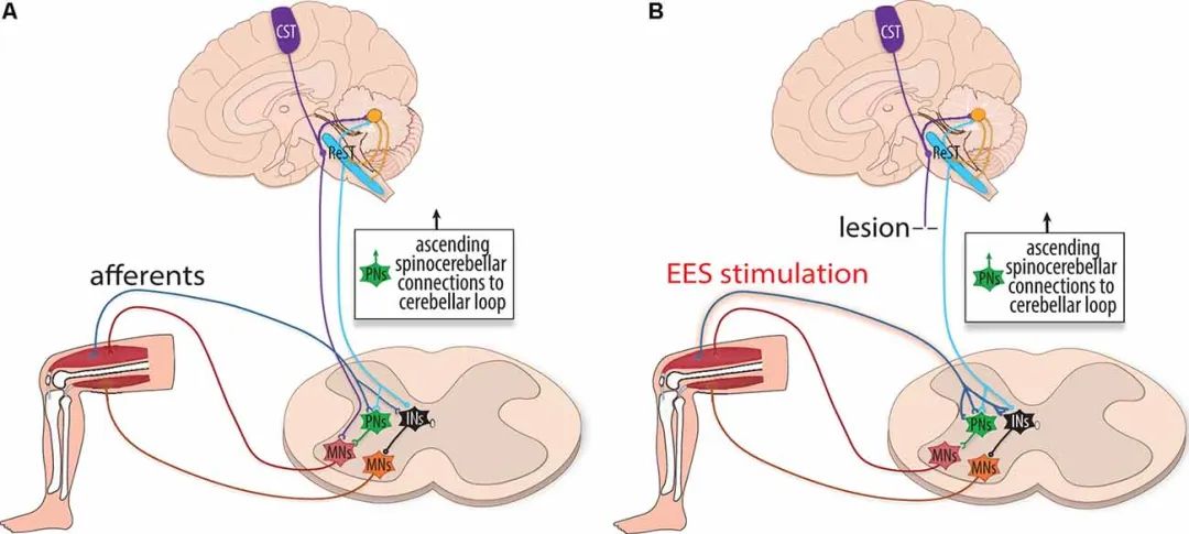 另外,在这些神经元的上游还存在着另一个核心问题。脊髓损伤通常会破坏一些从大脑到脊髓的神经通路,导致它们之间的连接方式发生重新组织。如果 EES 治疗改变了 V2a 神经元从大脑接收到的信号,那么识别和调节这些下行通路或许也可能为运动恢复治疗提供另一种途径。