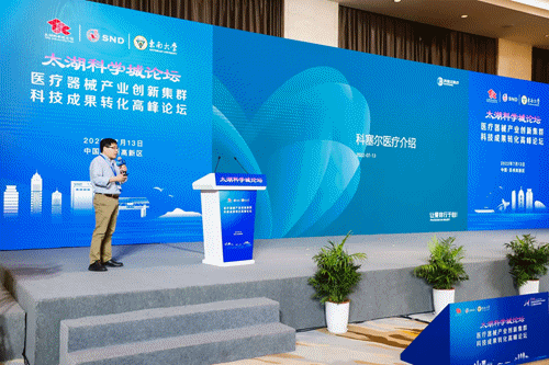 现场发布环节,江西省人民医院骨科名誉主任董谢平、江苏省人民医院消化科主任张国新、常州市第二人民医院副院长倪昕晔、江苏省口腔医院种植科主任汤春波4位医学专家进行了医学科技成果发布。天鸿盛捷、康多机器人、科塞尔医疗、微至医疗、迈得诺医疗5家高新区医疗器械企业进行了创新产品及技术需求发布,台上台下展开热烈交流与对接。
