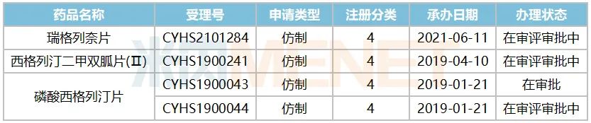 表2:磷酸西格列汀片上市申请情况
