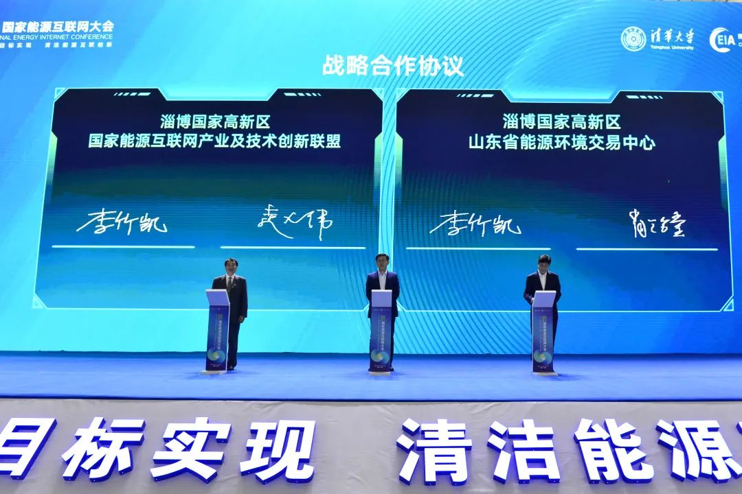 会议由联盟秘书长赵伟主持;刘亚芳副司长、曾嵘副校长、江敦涛书记分别致辞;马晓磊市长发布《淄博市实施减碳降碳十大行动工作方案》;曾嵘与江敦涛为国家能源互联网大会长期会址揭牌。高新区工委书记、管委会主任魏玉蛟与赵伟共同为国家高新区能源互联港、国家高新区金融科技中心、独角兽生态岛起步区、直播跨境电商基地揭牌。高新区工委委员、管委会副主任李竹凯代表淄博高新区与联盟签订战略合作协议、与山东省能源环境交易中心有限公司签订能源环境交易平台协议。