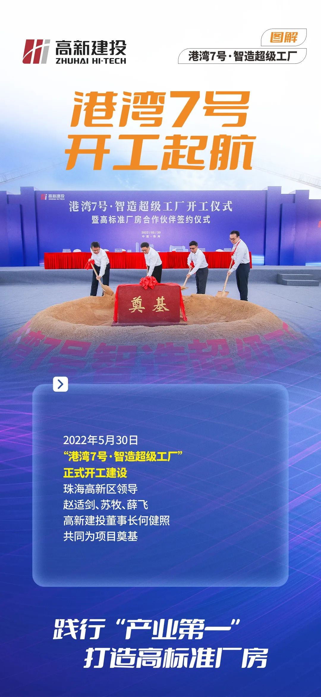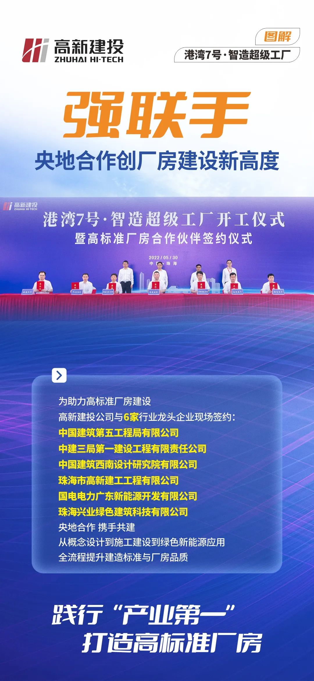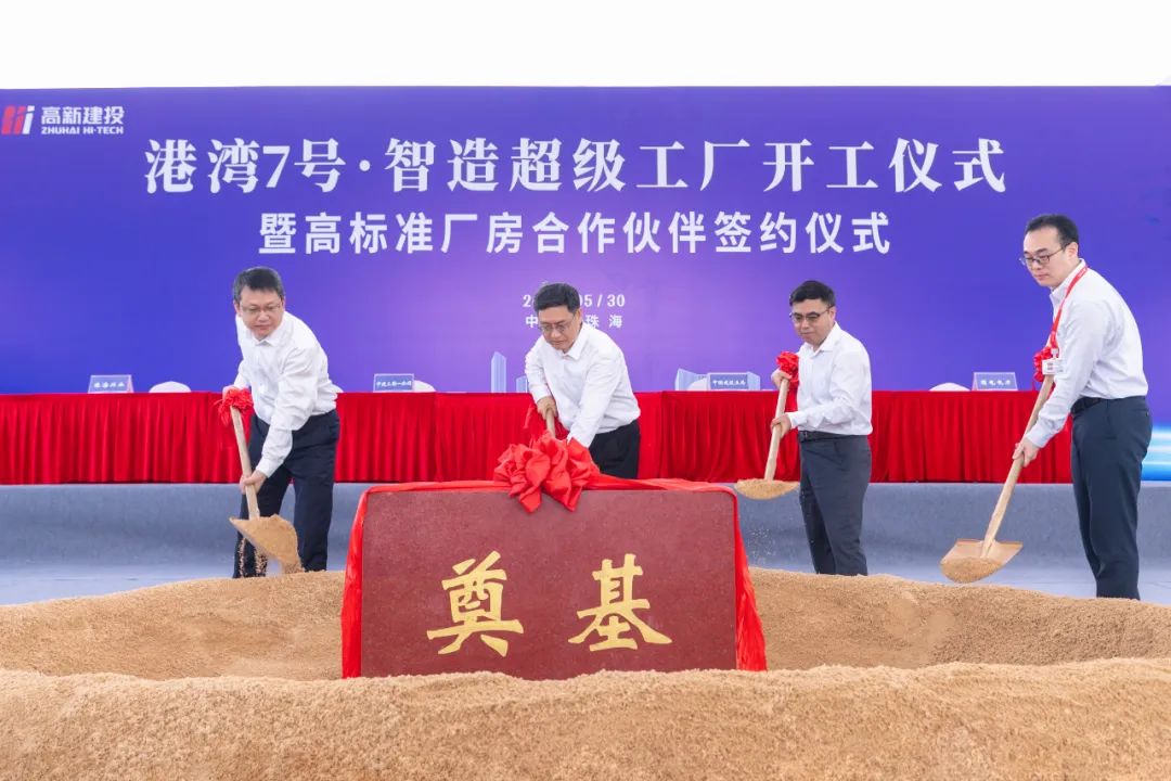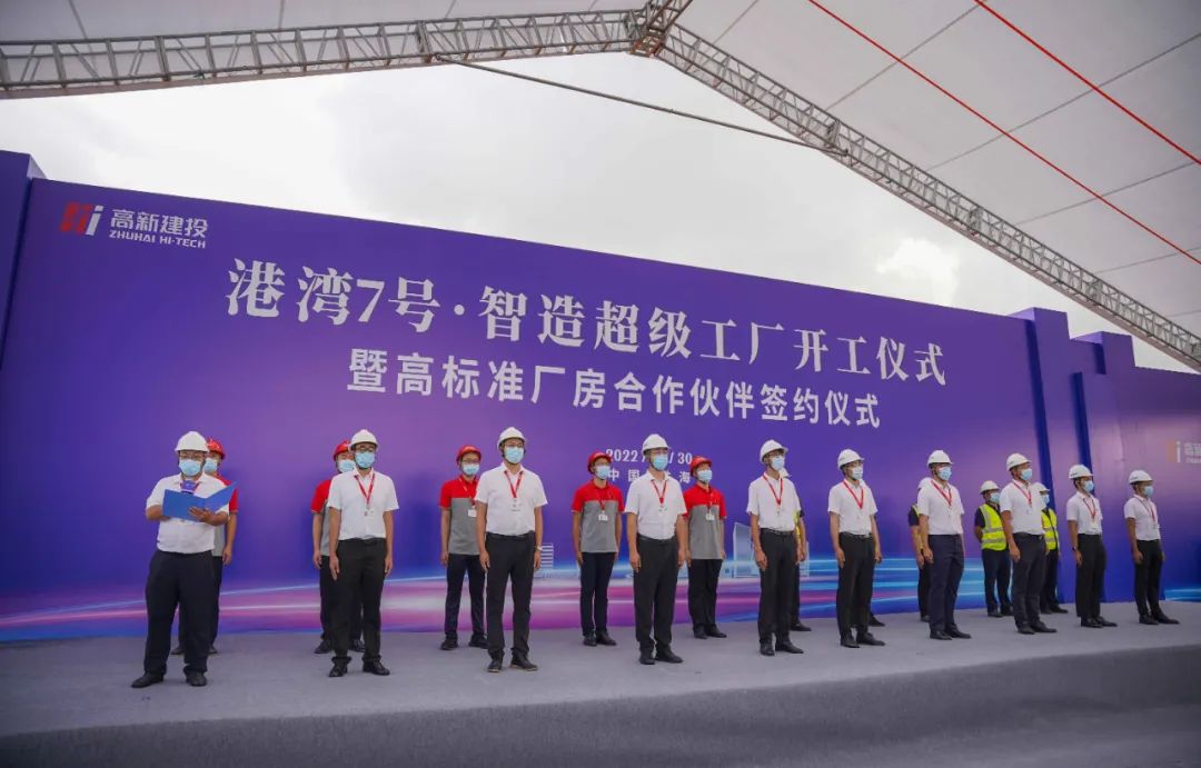 5月30日上午,珠海高新区举行港湾7号·智造超级工厂开工仪式暨高标准厂房合作伙伴签约仪式,意味着总体量达60万平方米的“港湾7号·智造超级工厂”正式开工建设。高新区党工委书记赵适剑,高新区党工委委员、管委会副主任苏牧、薛飞及高新区各职能部门主要负责同志出席仪式。仪式由珠海市高新建设投资有限公司(下称“高新建投”)总经理潘峰主持。