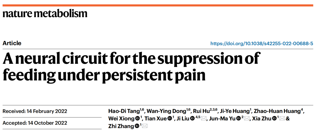 揭示了疼痛降低进食量和摄食动机的神经基础。