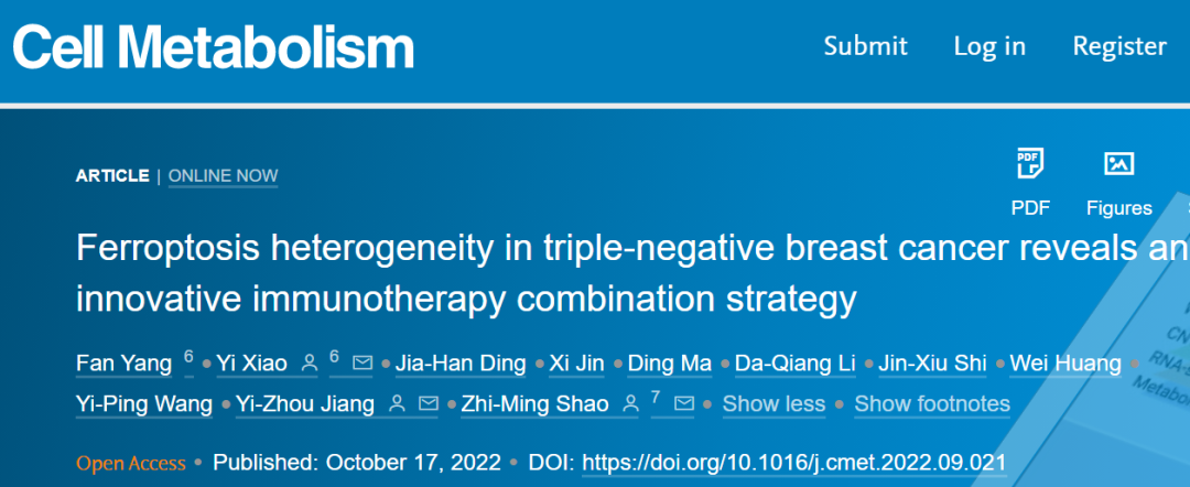 Cell Metab | 邵志敏/江一舟团队通过多组学数据揭示三阴性乳腺癌铁死亡异质性
