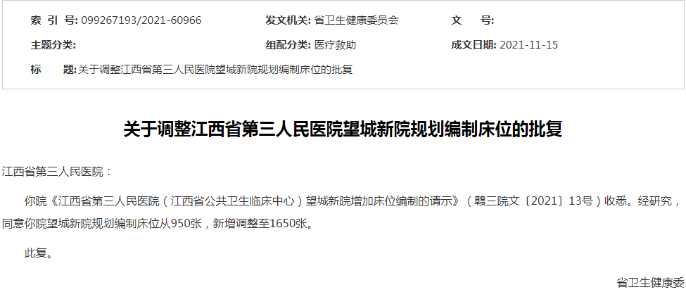 江西省第三人民医院拟投资250013.26万元,于江西新建经济开发区坚磨大道以东,龙兴西大街以北,西一环高速以西,武功山大道以南新征用地约177255.53平方米,项目主要建设内容包括急诊部、门诊部、住院部、医技科室、保障系统、行政管理、院内生活、科研用房、培训教学及住宿、图书及活动、不计容地下建筑等主体工程以及其相关附属配套设施建设。本项目整体总规划用地面积177255.53平方米,总建筑面积324020平方米,总规划床位数1650个。
