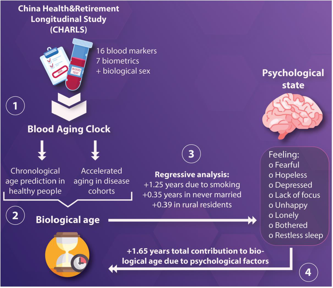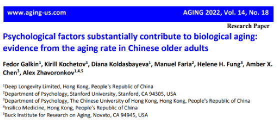 近日,来自香港中文大学、美国斯坦福大学及多个研究机构的科学家在Aging-US杂志上发表了题为Psychological factors substantially contribute to biological aging: evidence from the aging rate in Chinese older adults的研究论文。这项研究依据中国健康与退休纵向研究(CHARLS)的血液检测等数据,开发了一种新型的衰老时钟来确定中国成年人队列中的生物年龄。并且证明,生物体衰老不仅由生理因素决定,而且在一定程度上还受心理状态和社会地位的影响。