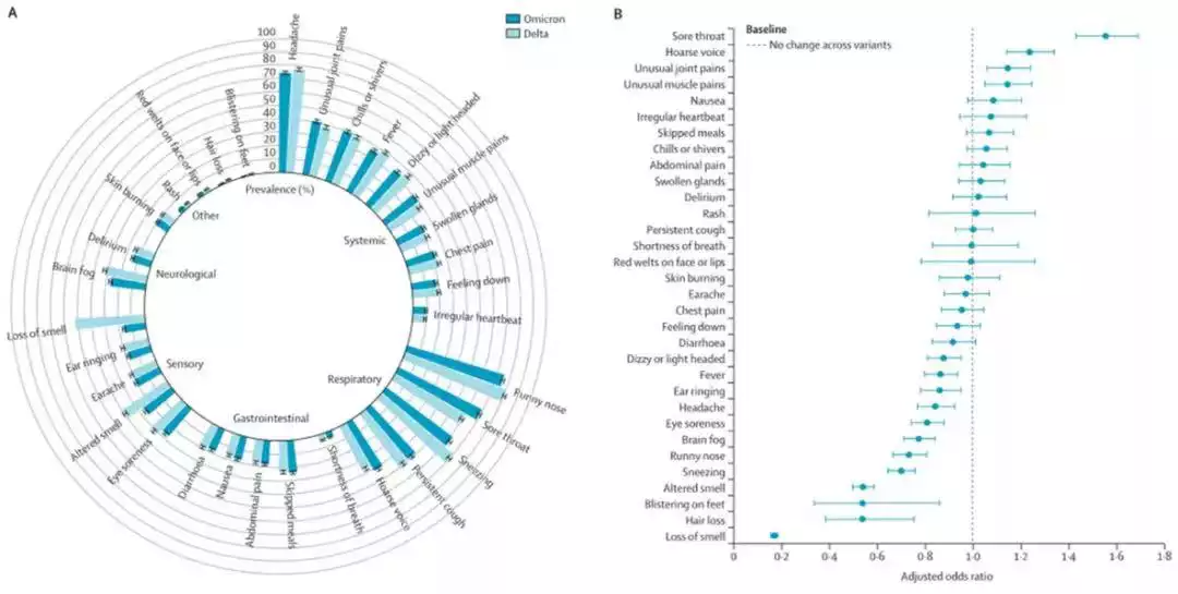 值得注意的是,虽然与德尔塔相比,奥密克戎感染者出现嗅觉丧失的比例大幅减少,但不是完全没有!这个比例约为17%。