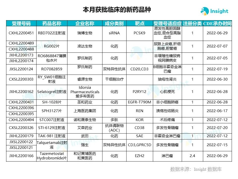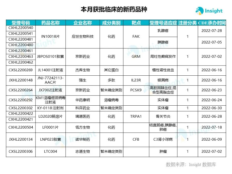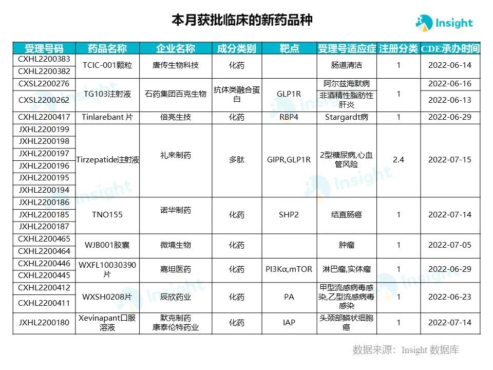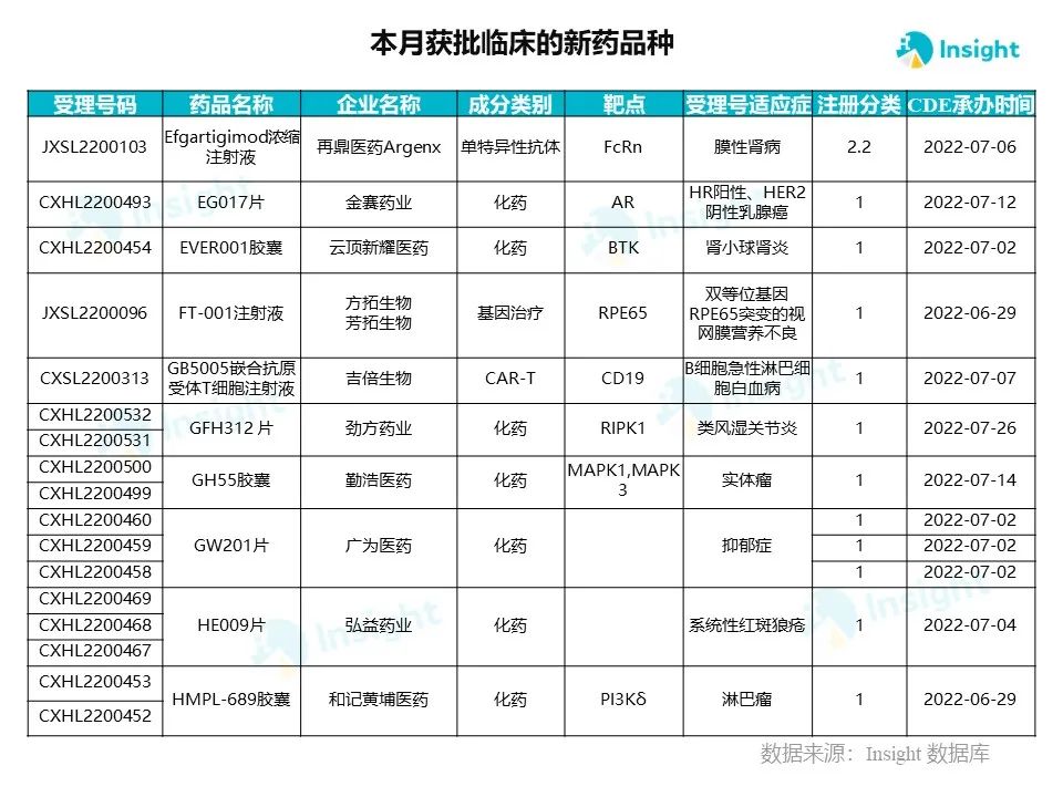 9 月新药获批临床的受理号 209 个,涉及 121 个品种,部分产品介绍如下。