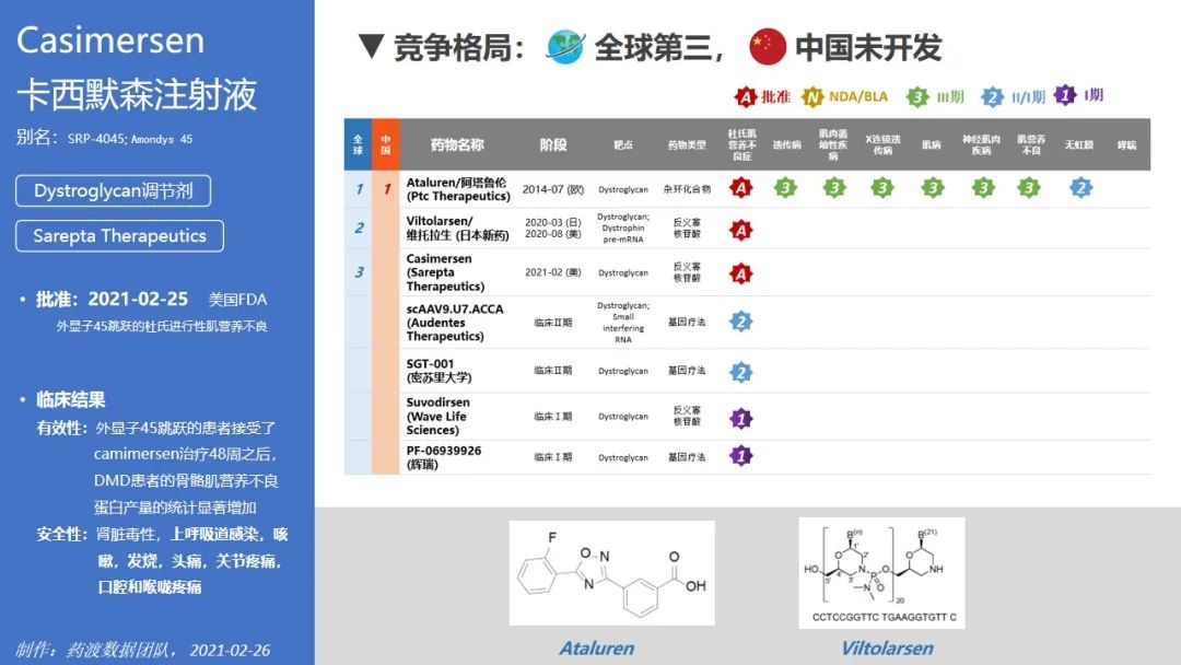 Casimersen详情及Dystroglycan调节剂竞争格局见下图: