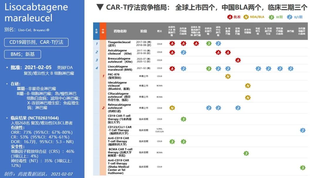 全球第四款CAR-T疗法Lisocabtagene maraleucel (商品名:Breyanzi)