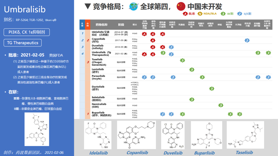 淋巴瘤新药Umbralisib (商品名:Ukoniq) -