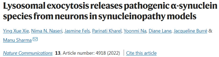 1. Ying Xue Xie et al. Lysosomal exocytosis releases pathogenic α-synuclein species from neurons in synucleinopathy models. Nature Communications, 2022, doi:10.1038/s41467-022-32625-1.