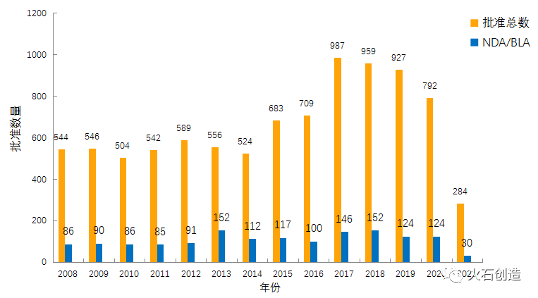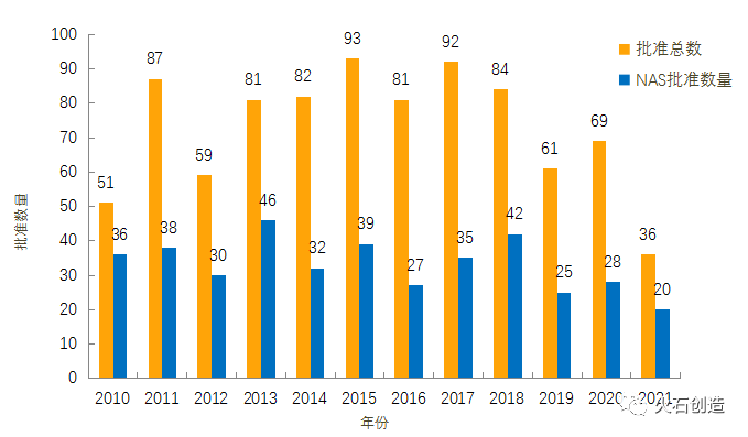 图1:2010—2021年FDA药物批准数量变化情况