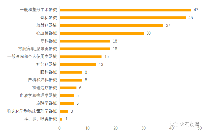 通过对510(k)上市前通知的器械根据美国医学专业用途进行分类,结果发现,4月产品获批类型最多的为一般和整形手术器械、骨科器械、放射科器械和心血管器械见图4。