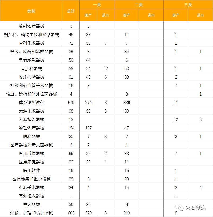 截止2021年5月6日,2021年4月国家局共批准首次注册三类医疗器械产品74个,其中国产58个,进口16个。本月各省级药品监管部门共批准境内第二类医疗器械注册943个,一类备案医疗器械1123个。