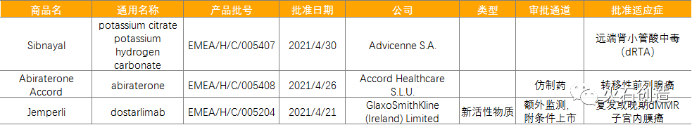 表1:2021年4月FDA批准NDA/BLA药物列表