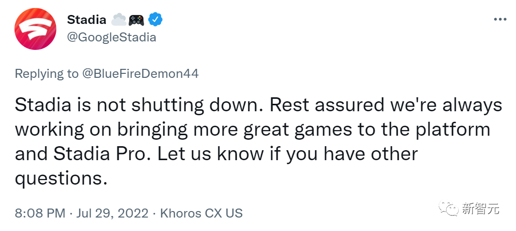 不过,今年早些时候,谷歌还专门针对Stadia要黄的传言发推特澄清过:「Stadia没有关闭。请放心,我们一直在努力为平台和Stadia Pro带来更多优秀的游戏」。