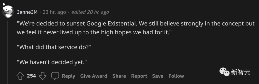 「我们决定关掉『Google Existential」。我们仍然会坚信这个概念,但我们觉得它从未达到期望的高度。」