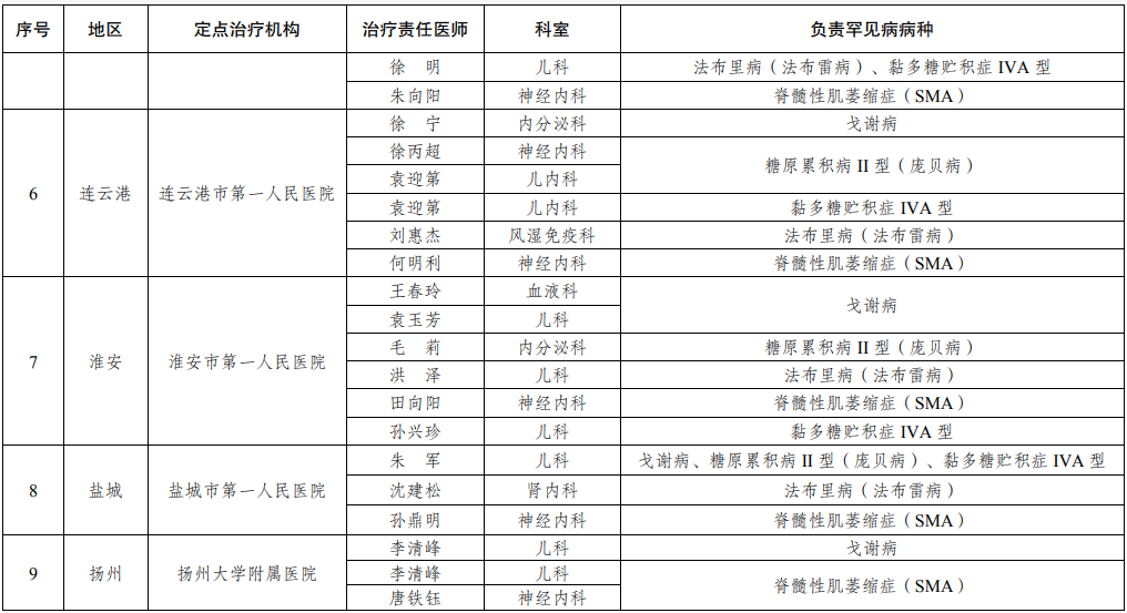 上述3所罕见病指定诊断医疗机构同时作为南京市罕见病定点治疗机构,治疗责任医师名单见图2。
