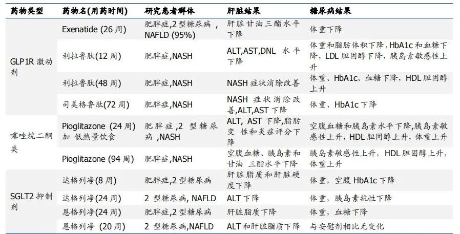 抗糖尿病药物用于 NAFLD/NASH 临床试验结果