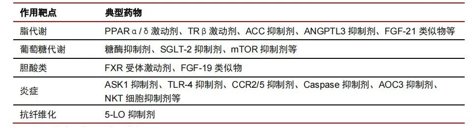 NASH 药物的作用靶点及典型药物