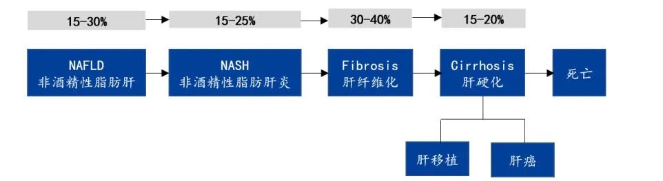 NASH 是 NAFLD 的一种严重形式。据统计,大约有 15%-25% 的 NAFLD 会发展为 NASH。
