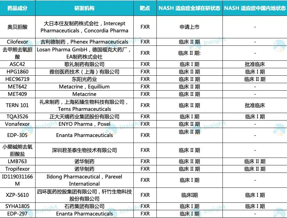 全球靶向 FXR 化药新药在研状态