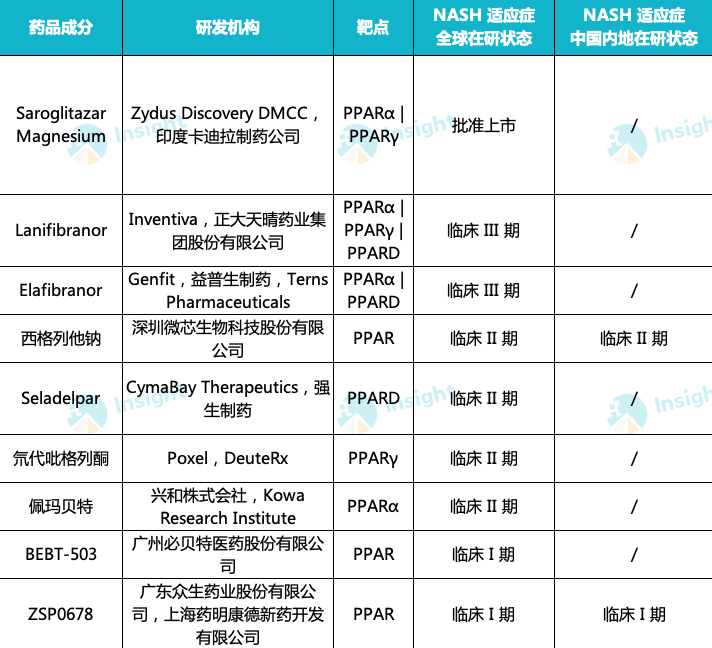 全球 PPAR 激动剂在研状态