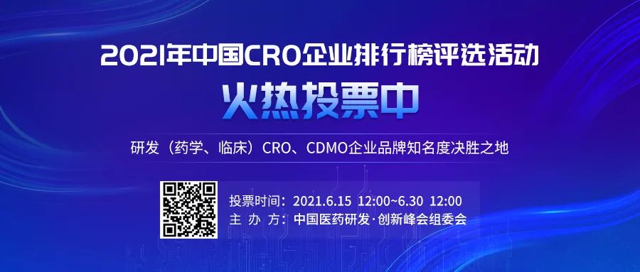 倒计时1天!“2021年中国CRO企业排行榜”评选活动进入投票、拉票最后冲刺!225家研发(药学、临床)CRO、CDMO企业参赛,活动访问量高达618万+,累积投票数102万+。