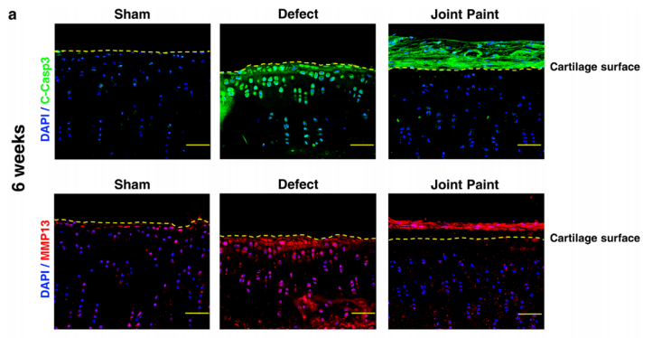 这一观察结果表明,在植入开始时会产生急性炎症反应,但会随着时间消退,这表明“关节油漆”具有可生物降解和生物相容性。