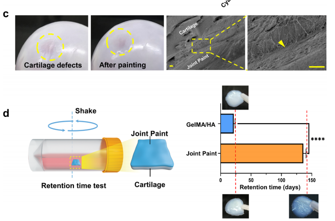 此外,体外细胞研究也表明,“关节油漆”与人类干细胞高度兼容,这表明其在体内使用时具有再生潜力。