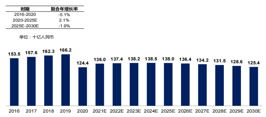 相比国外,我国抗生素行业发展较晚,但近年来保持着高速增长。从2016年至2019年,中国抗菌药市场呈现稳步增长的趋势,2020年受新冠疫情影响,社区隔离防疫、口罩佩戴等政策落实导致细菌传染性疾病发病情况减少,随着未来疫情影响的消退,2021-2024 年预计中国抗菌药市场呈现缓步回升的趋势,预计到2030年,中国抗菌药市场规模为1,254亿元,从2025年至2030年,复合年增长率为-1.9%。